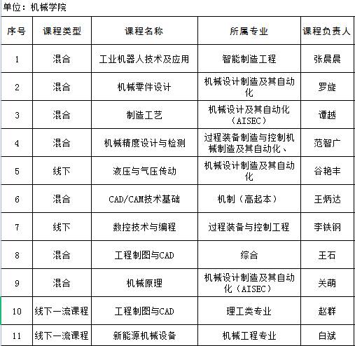 根据《关于太阳成集团tyc33455cc2022年校级一流本科课程遴选及省级一流本科课程推荐工作的通知(沈工院教发[2022]39号)》,机械学院已完成一流课程申报工作,本次共11位教师申报,申报信息如下: