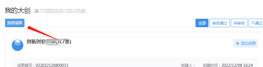 选择成果并与大创项目关联。