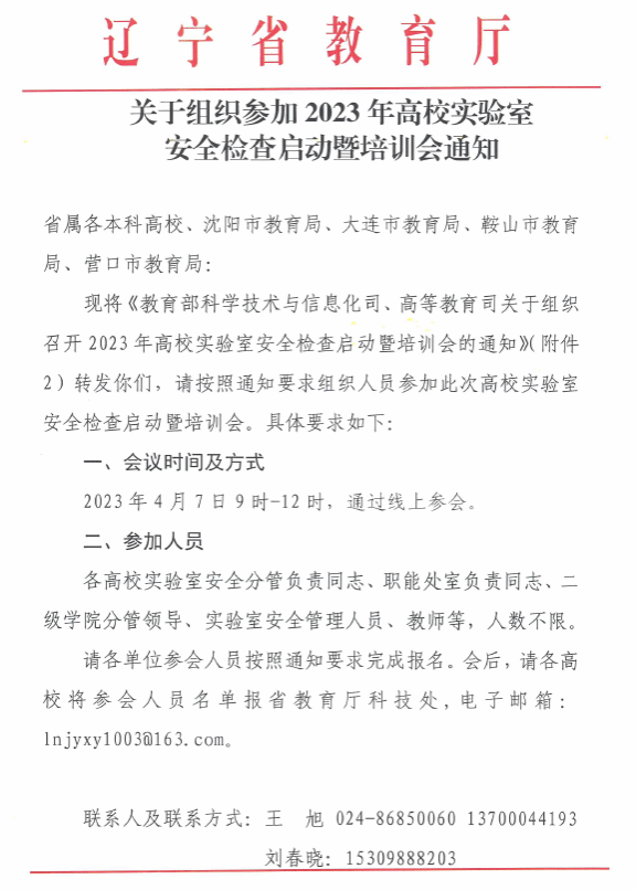 关于组织参加2023年高校实验室安全检查培训会的通知