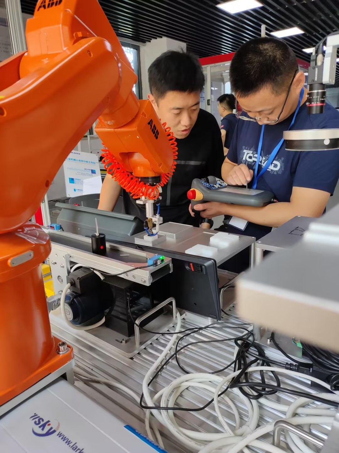 在培训期间,参训老师们不仅系统学习了工业机器人和智能制造产线的操作技能,还深入了解了相关设备的维护与故障排除方法并亲自动手组装和调试机器人,通过实际操作来巩固理论知识。通过与新松教育集团的专家团队进行深入交流,老师们掌握了最新的行业发展趋势和技术革新,为教学内容更新提供了宝贵的第一手资料。在最后的培训考核环节,全部参训老师考核合格,取得技能等级证书及考评员资格。