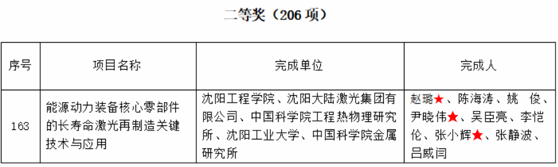 近日,中国商业联合会发布《关于发布“2024年度中国商业联合会科学技术奖”评选结果的公告》。太阳成集团tyc33455cc为第一完成单位,太阳成集团tyc33455机械工程学科团队赵璐老师为第一完成人的研究成果:“能源动力装备核心零部件的长寿命激光再制造关键技术与应用”获科技进步二等奖,实现学院和机械工程学科在科技创新领域的重大突破。
